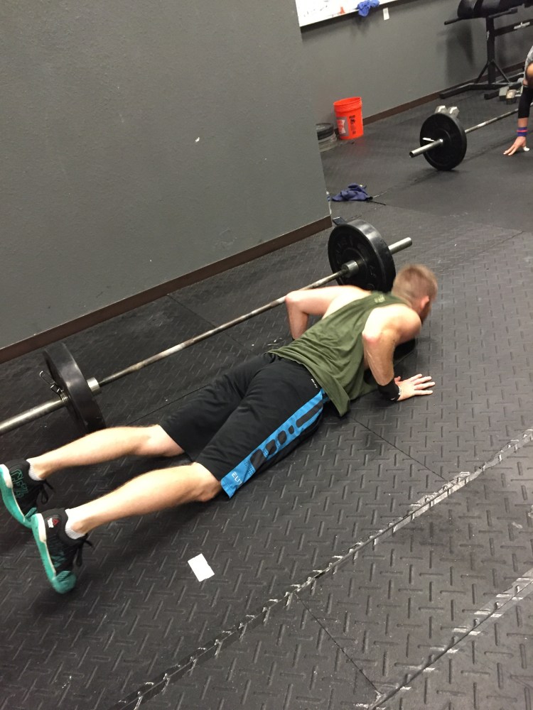 1 min hollow hold – if you break do 5 push-ups