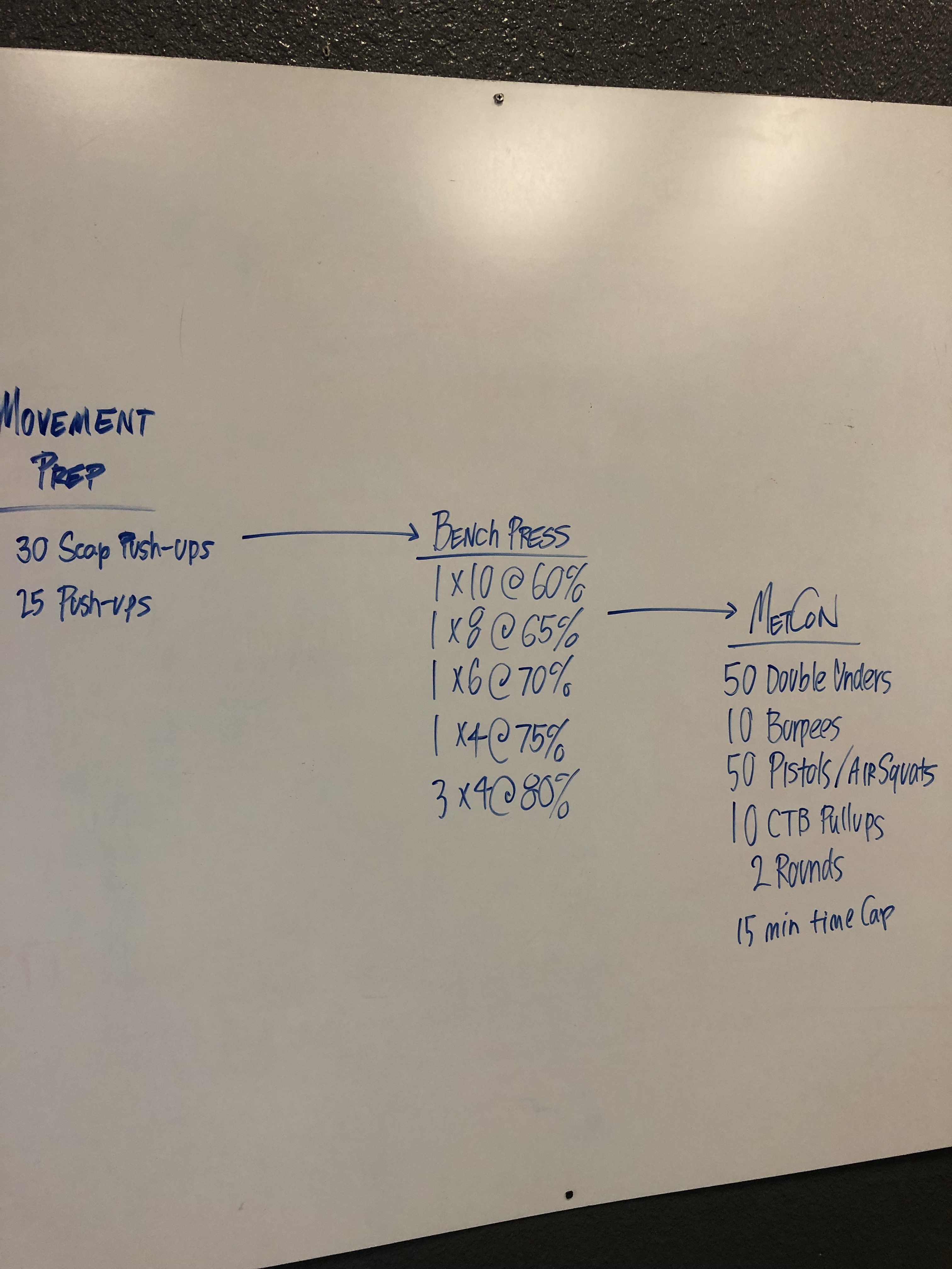 0378 Posted bycfupheavalSeptember 25, 2017September 25, 2017Posted inUncategorized Bench Press 3×4@80% MetCon 2 rounds 50 double unders 10 burpees 50 pistols / air squats 10 CTB pull-ups 15 minute time cap Share this: Click to share on X (Opens in new window) X Click to share on Facebook (Opens in new window) Facebook Like Loading...